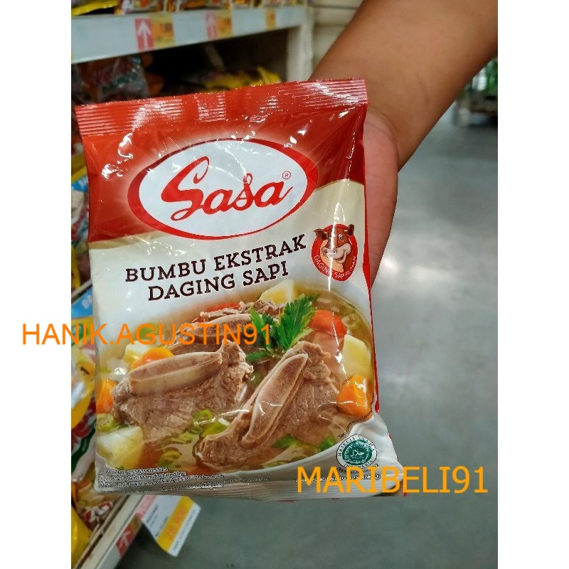 Kami menyediakan bumbu kaldu SASA ekstrak daging sapi.