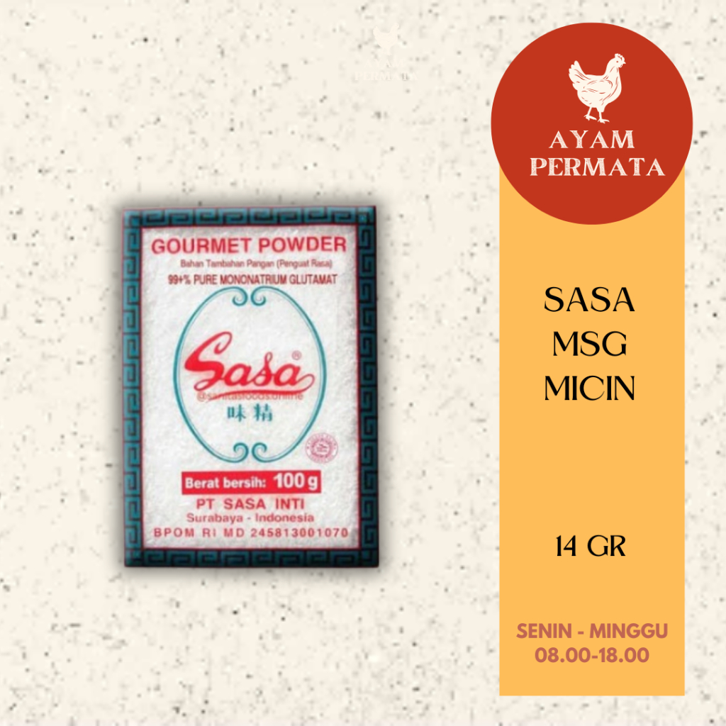 Informasi Penyajian: 1 menu rata-rata membutuhkan 1/2 sendok teh (2 gr) Sasa MSG.