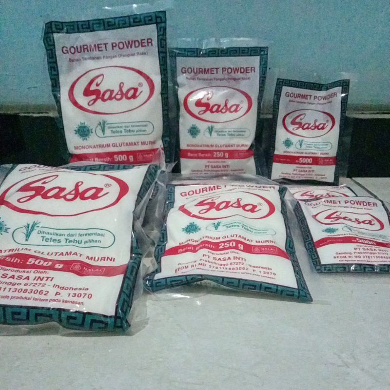 Sasa Penyedap Masakan terbuat dari alami tetes tebu alami, proses fermentasi yang menghasilkan protein glutamat secara alami dan diproses secara higenis, untuk menghasilkan produk berkualitas.