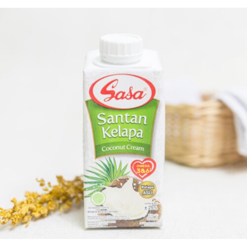Santan Sasa terbuat dari perasan pertama daging buah kelapa tua segar pilihan, yang diproses secara higienis dengan teknologi modern, menghasilkan aroma santan asli dan tanpa bahan pengawet juga bebas kolestrol.