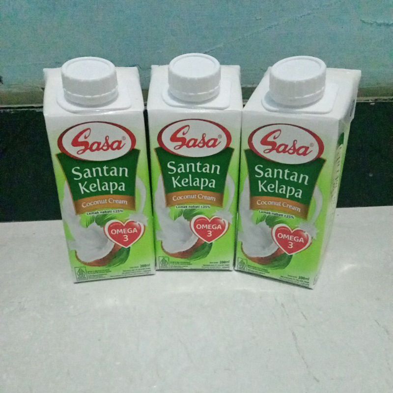sasa sanatan terbuat dari daging buah kelapa tua segar pilihan.Diproses secara steril,menggunakan sistem UHT dengan tecnologi kemasan aseptik.