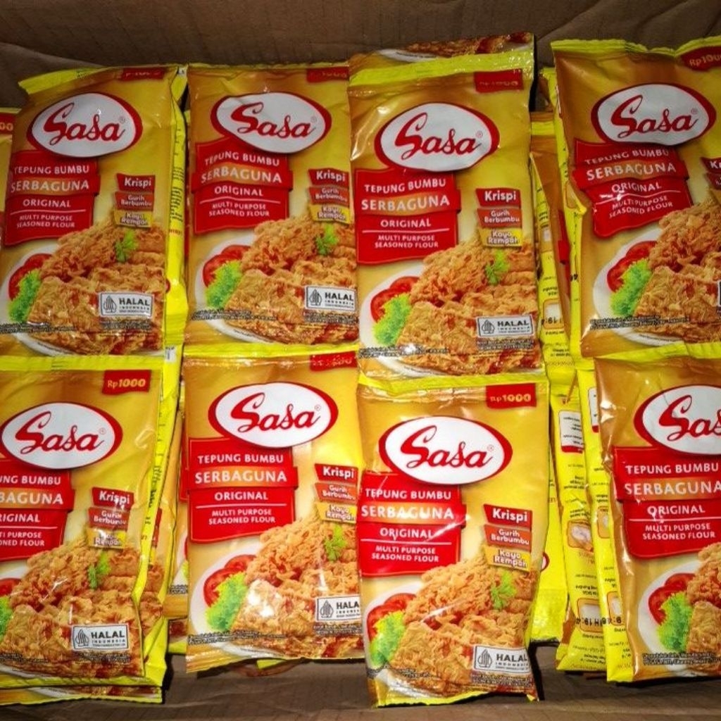 Sasa tepung bumbu serbaguna praktis digunakan, cocok digunakan untuk gorengan, ayam, tempe, jamur, udang dll, tanpa perlu tambahan bumbu lainya.