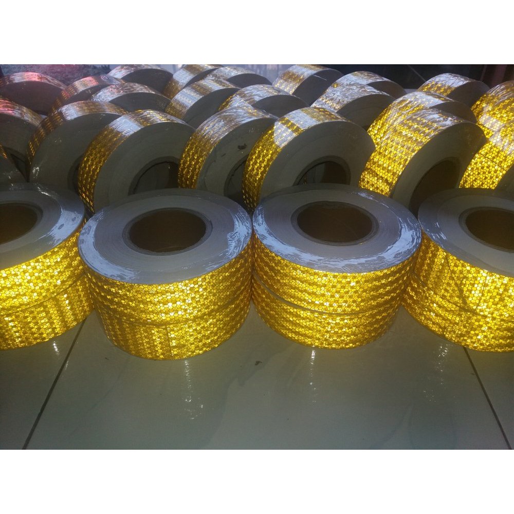 Sticker Auto Reflective Tape atau scotchlite sticker warna kuning dapat diaplikasikan pada kendaraan, helm, rompi dan baju yang bertujuan untuk keselamatan. Sticker reflective tape ini akan memantulkan cahaya jika mendapat sorotan lampu.