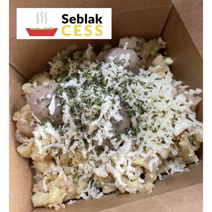 Makaroni & kerupuk udang yang di rebus yang di atasnya terdapat topping (sosis, keju, bakso, ceker dan ayam)
