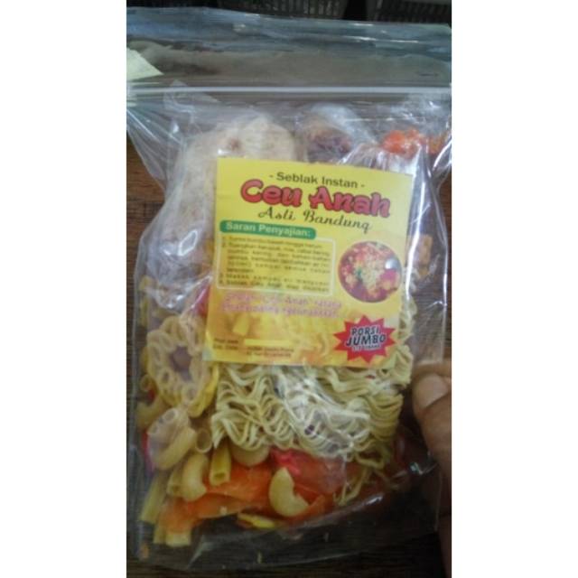 Seblak dengan varian kerupuk dan topping lengkap dengan bumbu.