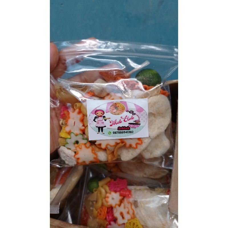 seblak instan bandung, yg bercita rasa gurih dan pedas, dengan bahan dan bumbu pilihan, terdiri dari krupuk, makaroni, mie /bihun,beserta bumbu dan jeruk limau, cocok untuk segala suasana, tinggal tambah toping sesuai selera , tahan satu bulan, taro di kulkas agar bumbu tidak berubah rasa,