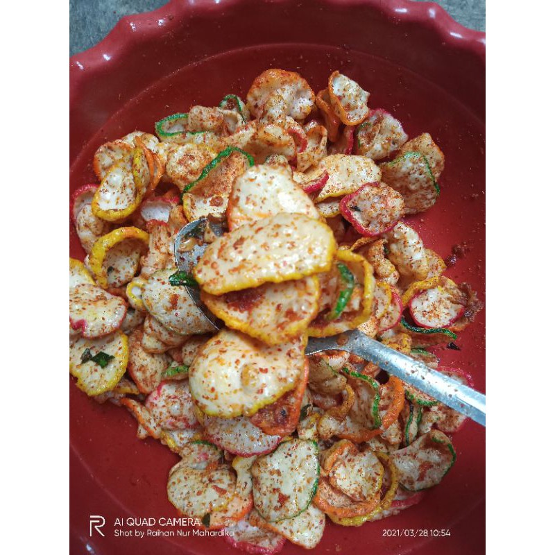 Seblak kering terbuat dari kerupuk udang yg d campur dengan bumbu rempah dan ektra daun jeruk Enak di jadikan cemilan