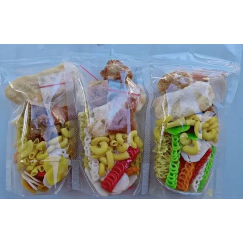 cuanki lidah,makaroni,kerupuk,jeruk limo,bumbu pedas,bumbu asin,mie kuning