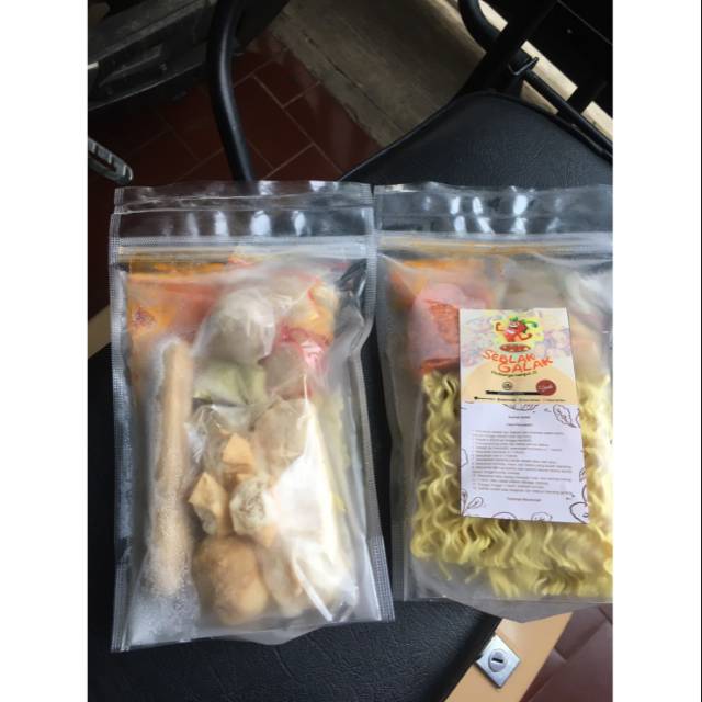 Terdiri dari isian sosis, mie, kerupuk seblak, bakso, kerupuk,otak otak, macroni, krupuk pangsit