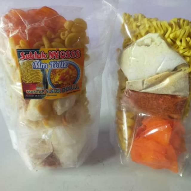 Seblak instan dengan isi dan bumbu di dalamnya..