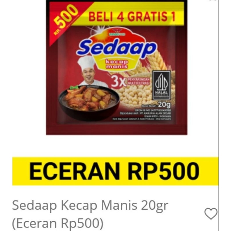 Sedaap Kecap Manis Sachet eceran Rp.500,harga tsb utk 1 sachet.