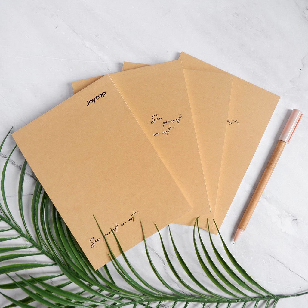 Buku notes polos bergaya minimalis ini berisi 58 lembar kertas putih yang dijilid dengan lem agar kamu bisa menulis sekaligus menyobek halamannya jikalau diperlukan. Ukuran B5 17 x 25 cm cukup lapang untuk mencatat ide dan semua corat-coretmu.