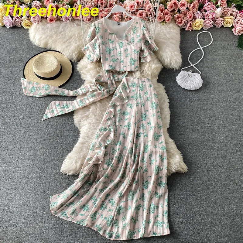 CottageSlumber Комплект из майки и пижамных штанов. Мелкий цветочный принт с рюшами на шее/Пижамный Комплект Shein, кремовый/бежевый