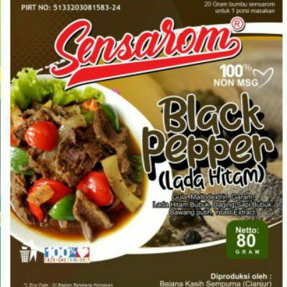 Sensarom bumbu lada hitam ini ukuran 80 gram ya. Takaran utk masak 20 gram sensarom lada hitam utk 1 porsi masakan.