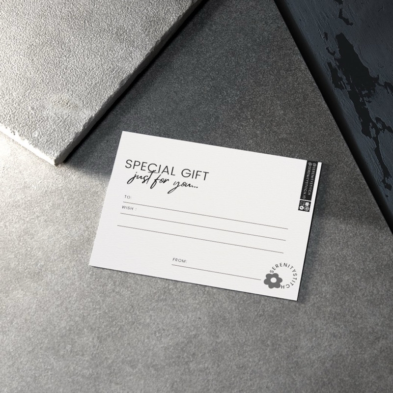 Elevate your gift with our exclusive Serenity Stitch add-on: a gift card and signature box.