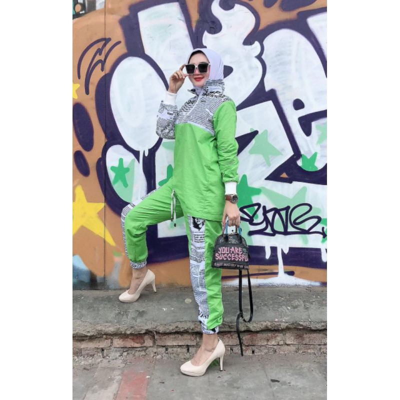 Celana Jogger bahan toyobo fodu motif koran printing limited kombinasi katun paris pinggang full karet saku kanan kiri fit