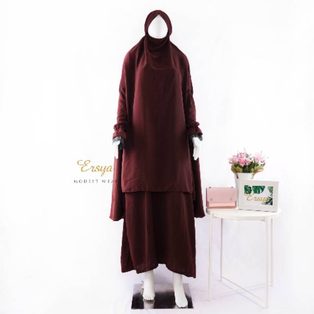 Set mina ini dalemannya full gamis jadi aman seperti gamis set biasa