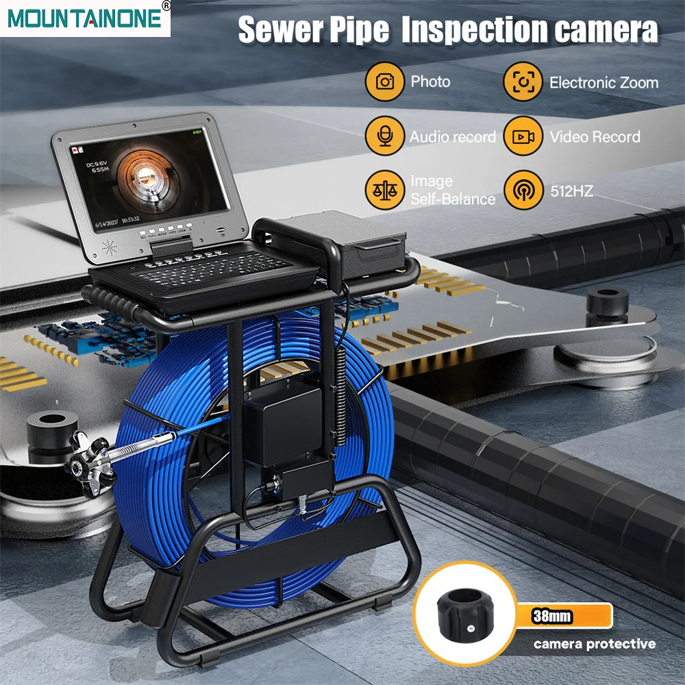 Sewer Camera 10" IPS 1080P DVR 7mm Cable Brake 512Hz Transmitter Self-Leveling Keyboard Meter Counter Video Inspection Endoscope
