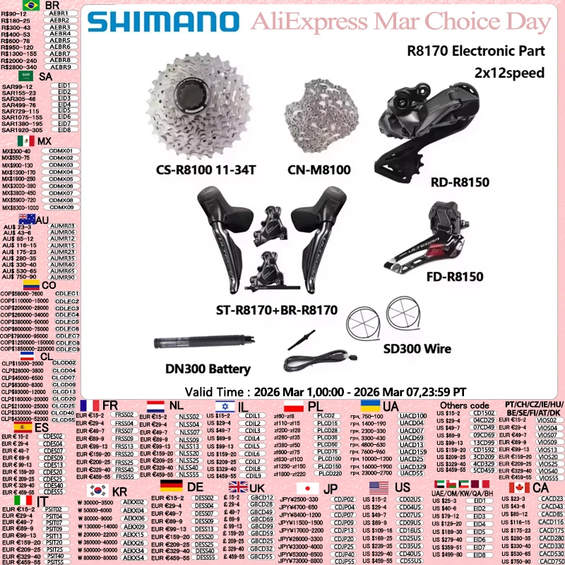 Shimano Ultegra R8170 Di2 Electronic Part 2x12S R8150 Rear Derailleur R8100 Cassette Hydraulic Disc Brake Road Bicycle Part