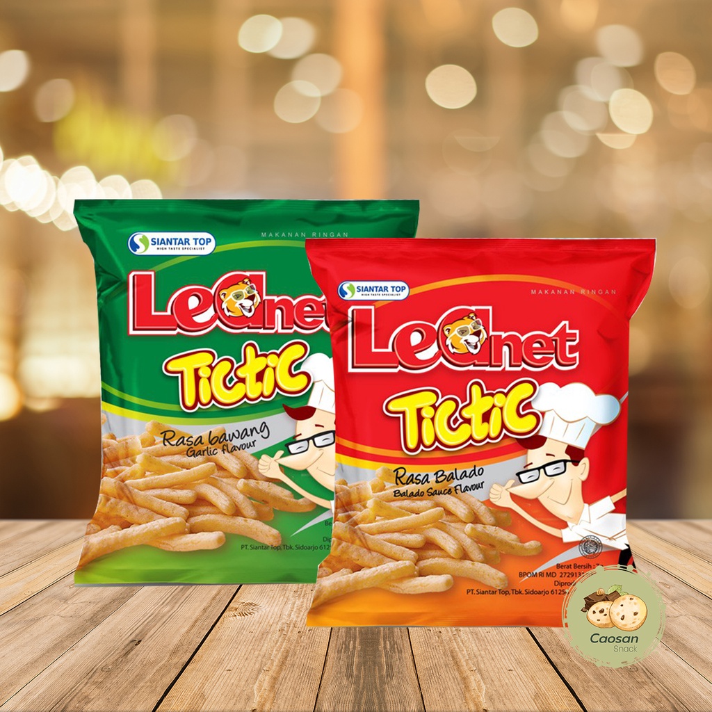 Leanet Tic-tic merupakan salah satu varian snack crunchy stick favorit rasa bawang , terbuat dari bahan berkualitas yang sangat gurih dan lezat . Leanet Tic Tic Bawang kemasan 7 g praktis dibawa kemana aja dan kapan aja.