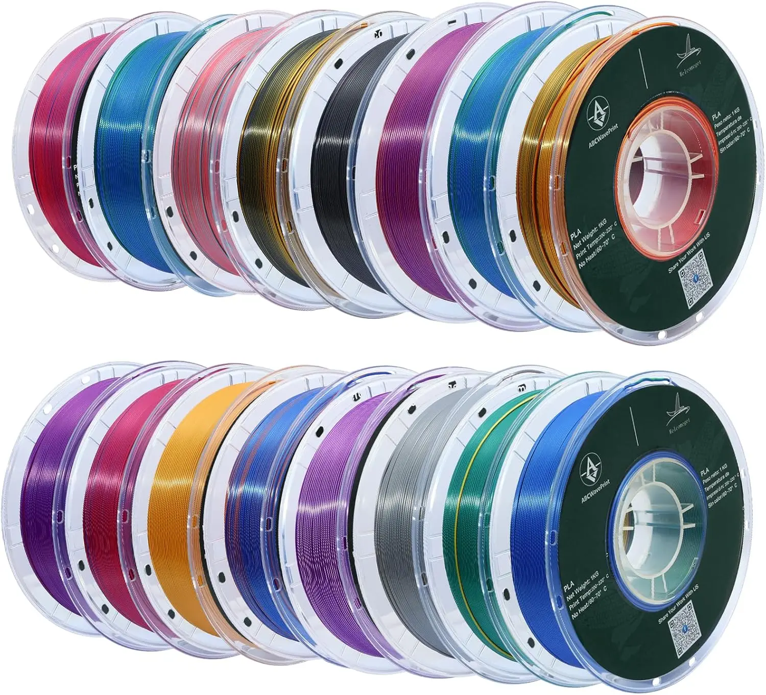 Silk PLA 3D Printer Filament Bundle, Tri-Color Effect, 16 Spools (1.75mm), High Accuracy +/-0.02mm