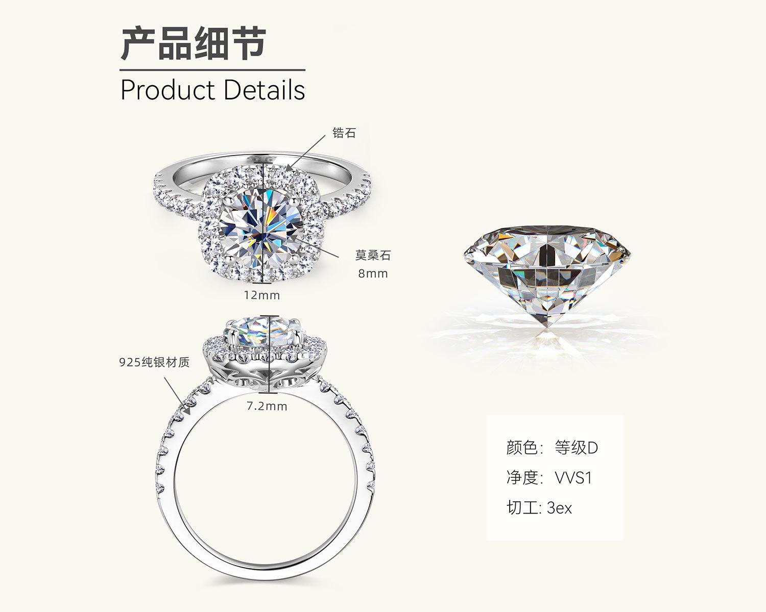 Silvere Glam Это кольцо из стерлингового серебра с муассанитом 2 карата, популярное трансграничное помолвочное кольцо для женщин, выполнено в виде ювелирного изделия «сахарный кубик». 10 US белый