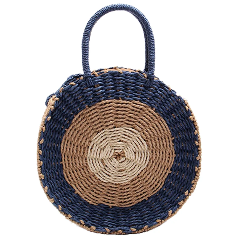 Simple Round Contrast Color Woven Beach Bag Hand Bag Shoulder Bag Dual-Use Diagonal Package