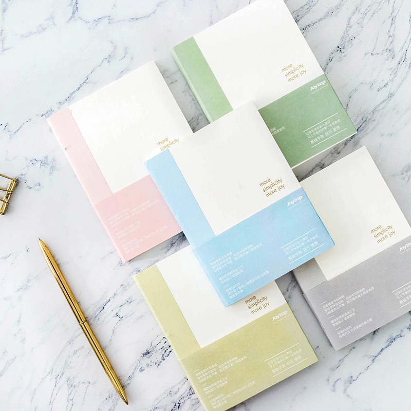 Buku tulis kecil dengan desain yang sederhana sehingga telihat elegan dan cantik. Memiliki warna-warna yang cantik dan lembut. Setiap variannya memiliki isi yang berbeda-beda. Ukurannya yang kecil membuatnya mudah dibawa kemana saja.