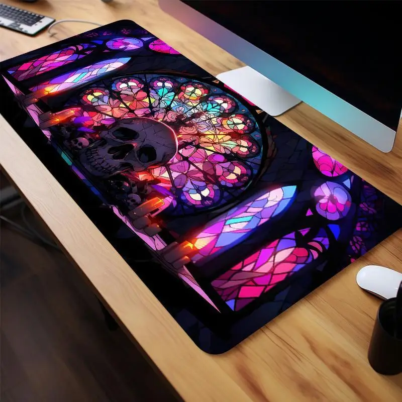 Skull Mouse Pad Gothic Gaming Desk Mat, Non-Slip Rubber Base Large Keyboard Pad for Office Home