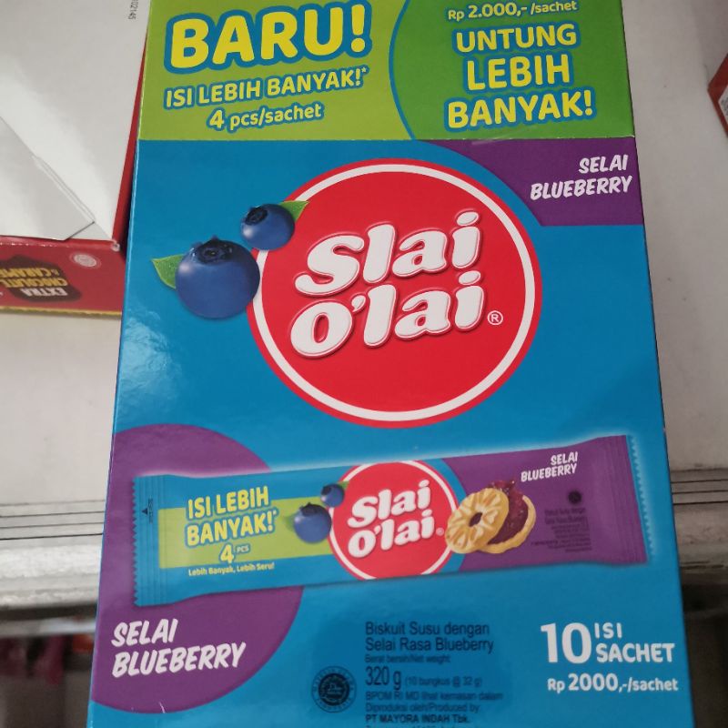 Slai Olai isi 10 x 32 gram, tersedia varian stoberi, blueberry, nanas