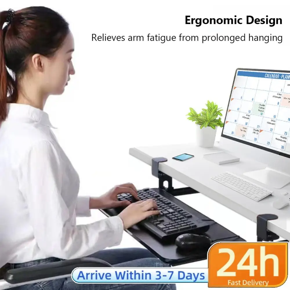 Slide Out Computer Keyboard Drawer Keyboard Tray Under Desk with C Clamp Mount Clamp-On Keyboard Tray Under Desk Keyboard Drawer