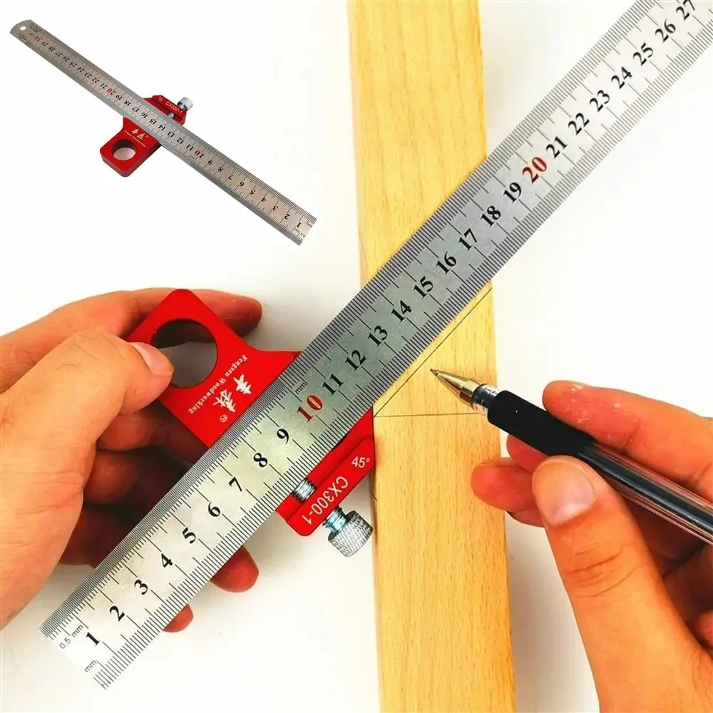 Sliding Scribing Ruler Aluminum Alloy Measuring Tools Marking Gauge Adjustable High Precision Square Ruler Woodworking