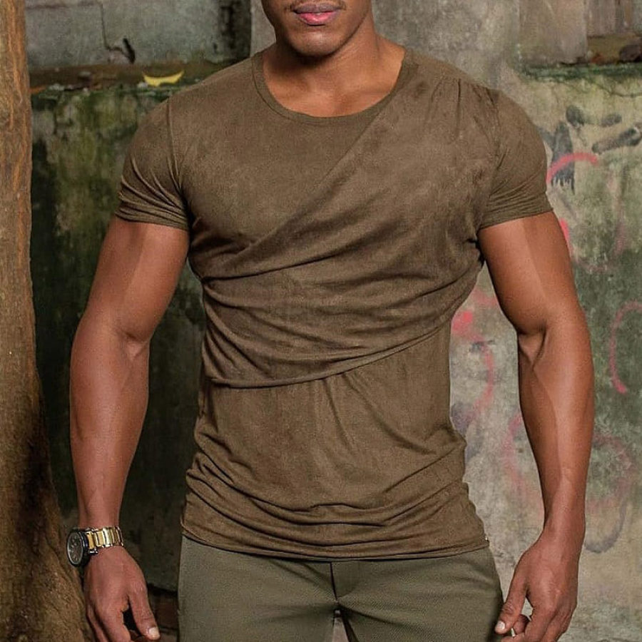 Slim-Fit Laminated Design T-Shirt In Gold Velvet Fabric