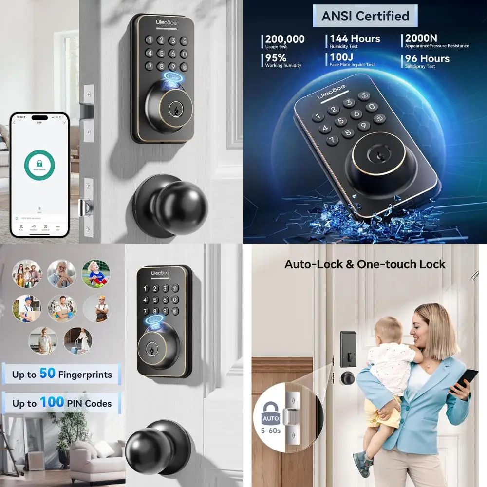 Smart Keypad Deadbolt with Handle, Keyless Entry Lock, Front Door Lock Set, App-Controlled, Auto-Locking, Easy Install, Oil Rubb