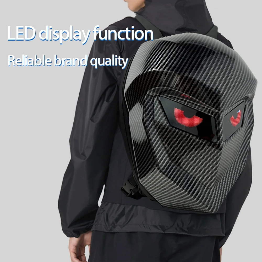 Smart LED Helmet Backpack with Bluetooth APP Control Custom Animation Screen Hardshell Black Large Capacity 20L 30L Rucksack for
