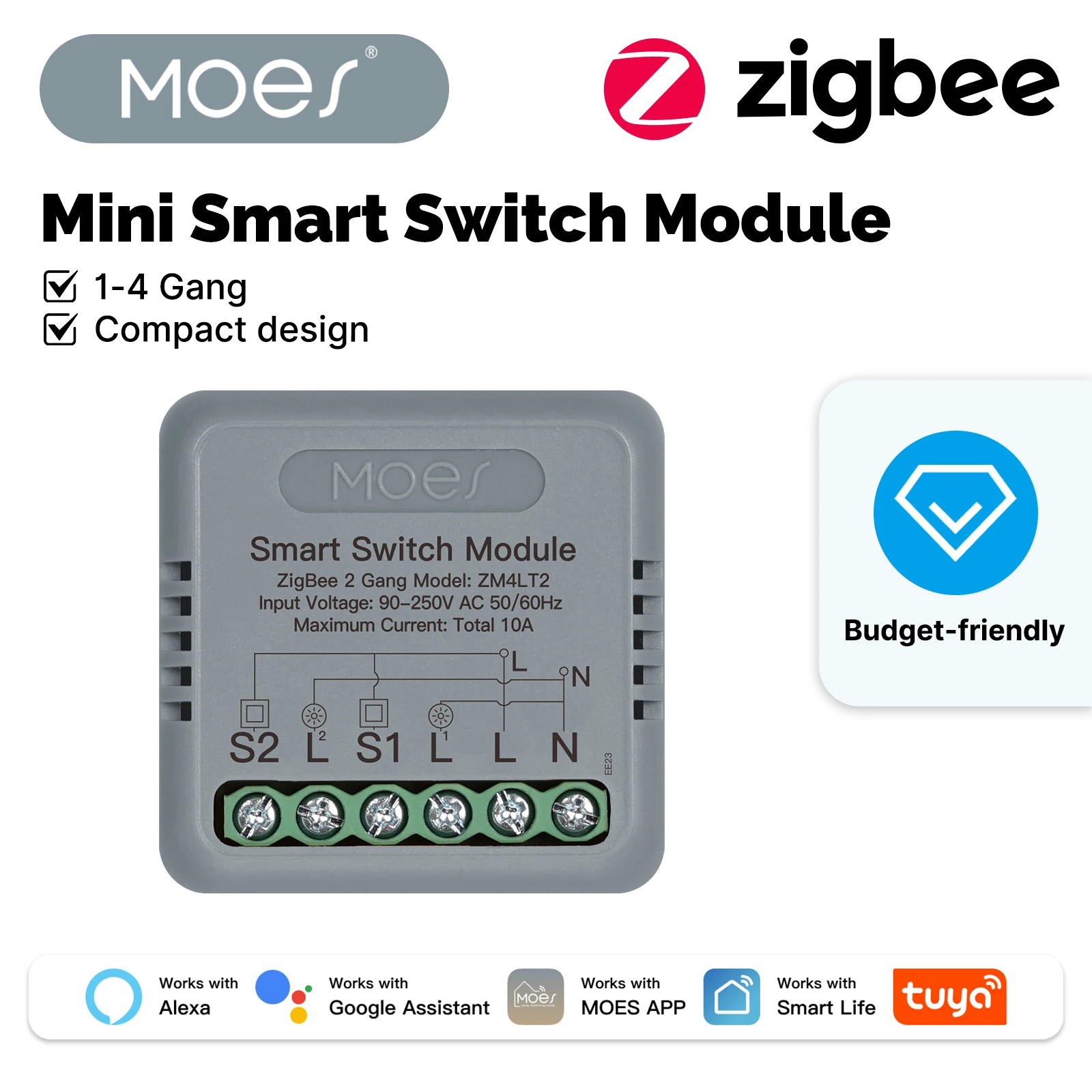 Smart Light Switch Module Zigbee, Mini Relay for Alexa Google Home App Control, DIY Dimmer Timing Switch, Neutral Wire Optional