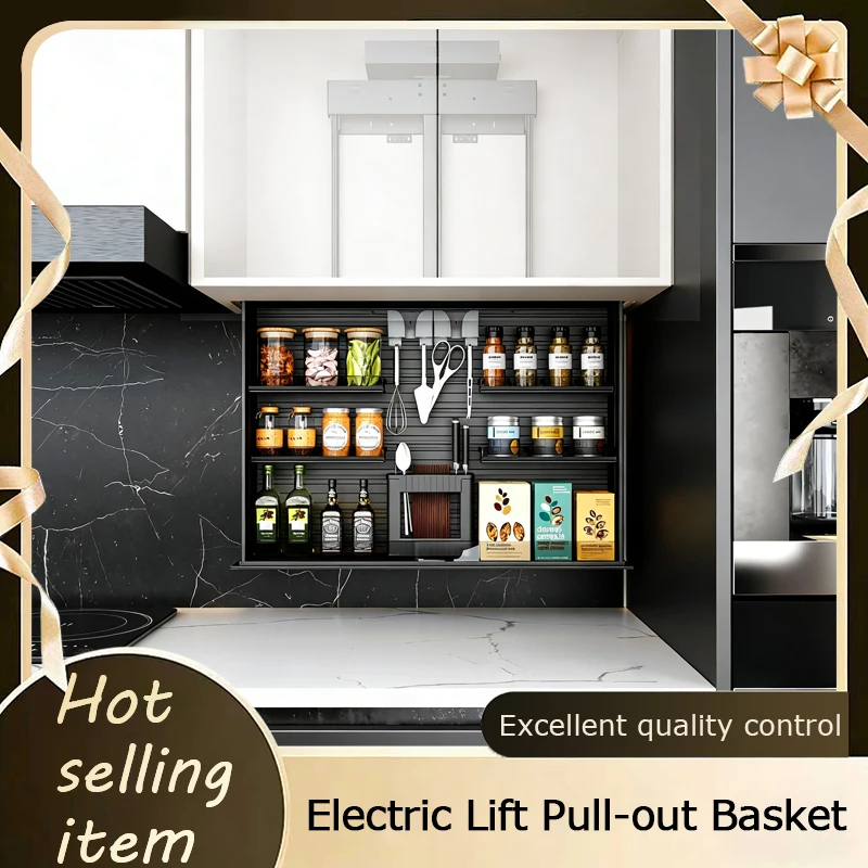 Smart Overhead Cabinet Spice Rack Vertical Lift Motorized Touch Voice APP Control Pull Out Organizer With Nano Coating