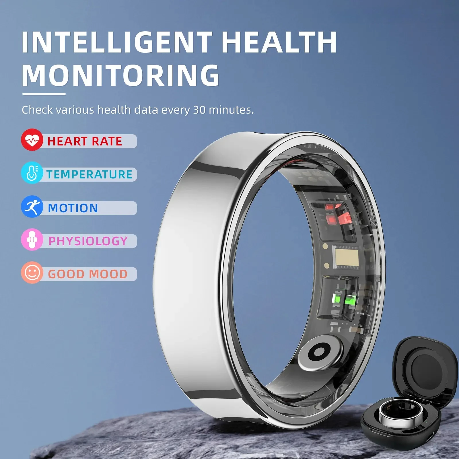 Smart Ring Wellness Tracker with Heart Rate, Temperature Check, Sleep, Stress| No Subscription | Android & iOS Compatible