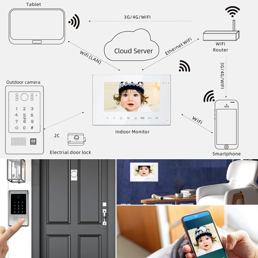 Smart Tuya Wifi 7'' 960P Video Intercom System Touch Screen Motion Detection Password RFID Card App Remote Control Unlock