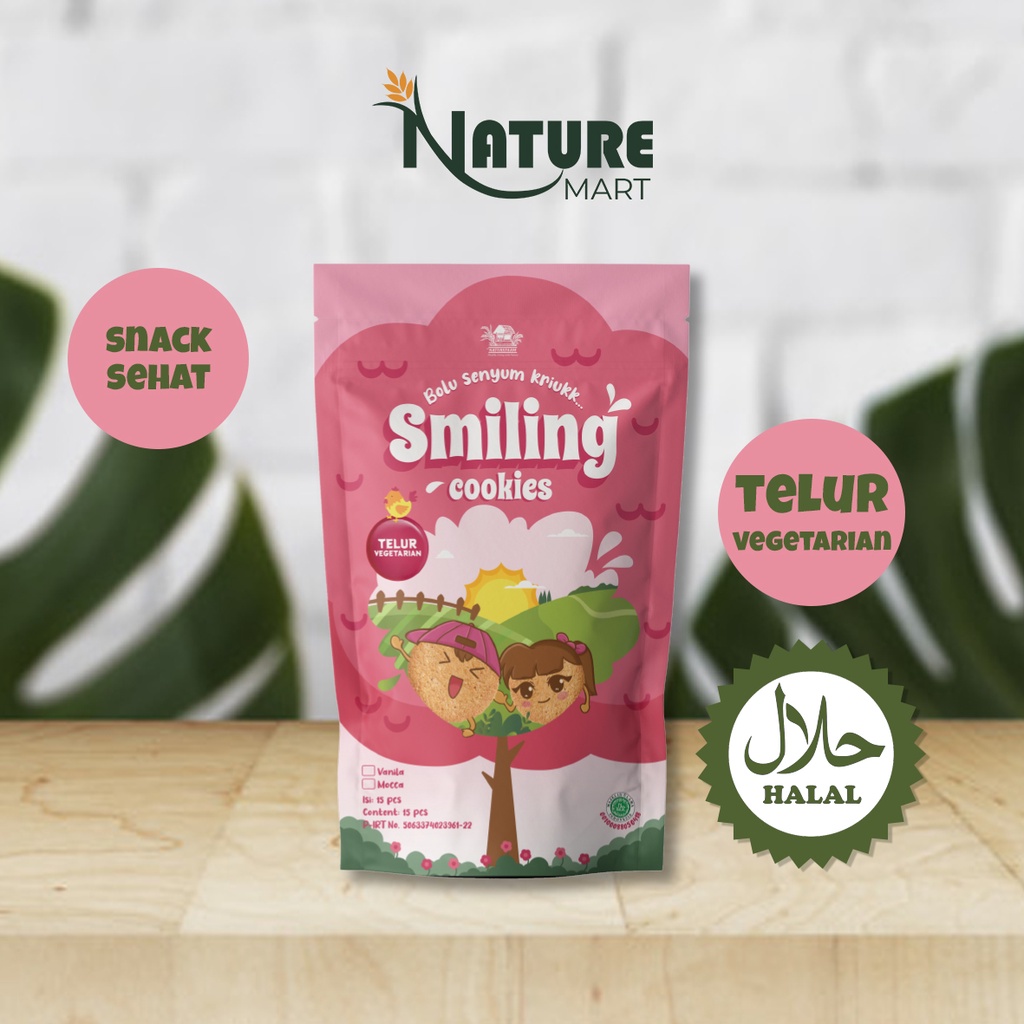 Smiling cookies dengan resep rumahan dan bahan premium. Menggunakan telur vegetarian sebagai bahan dasarnya. Telur vegetarian adalah telur yang diproduksi oleh ayam yang dirawat secara khusus, yaitu yang diberi pakan yang mengandung tumbuh-tumbuhan saja.