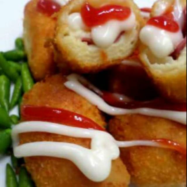 Risoles dengan isi daging sapi, mayonaise dan keju