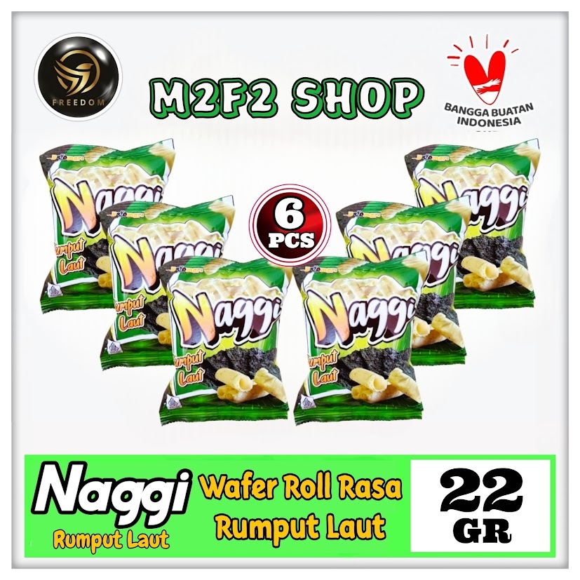 Snack Naggi Wafer Roll Rasa Rumput Laut Sachet - 22 gr (Kemasan 6 Pcs)