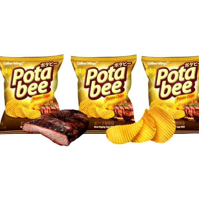 POTABEE REGULAR BBQ BEEF UKURAN 68GR Potabee potato chips bbq, keripik kentang rasa daging sapi bbq. Komposisi: kentang, minyak kelapa sawit (mengandung antioksidan butil hidrokinon tersier/TBHQ, perisa identik alami sapi panggang (mengandung penguat rasa (mononatrium glutamat, dinatrium 5'- ribonukleotida), ekstrak daging sapi, bubuk lada hitam.