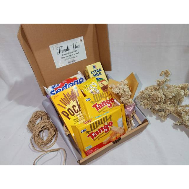 Snack box ini cocok untuh hadiah orang yg special (keluarga, sahabat, pacar, selingkuhan).