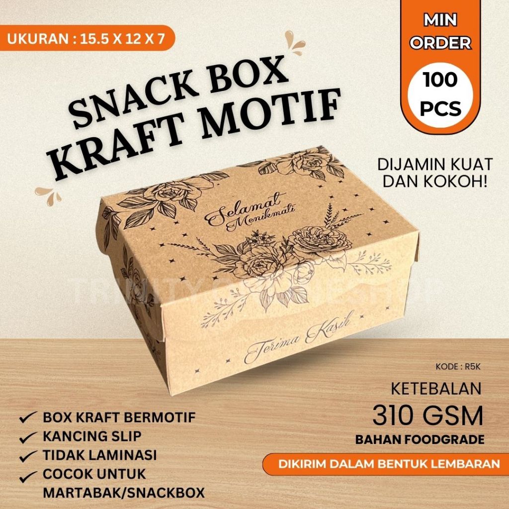 Snackbox R5K Kraft 15.5x12x7 Kotak Martabak Kotak Snackbox Kotak Roti Bakar Model Renda R5K Kotak R5K KRAFT 310 gsm FOODGRADE
