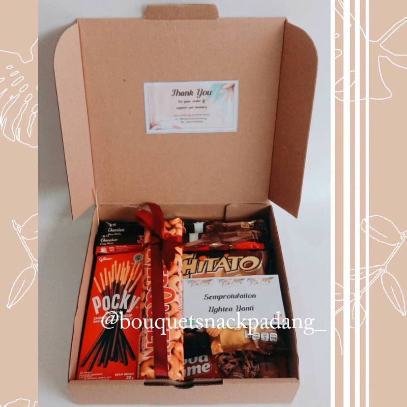 Buat kalian yang kebingungan cari kado buat sodara teman pacar sahabat dll nya yang lagi wisuda, kompre, sidang, Sempro, ulang tahun, nah kalian bisa jadiin nih snackbox terbaru dari kamii sebagai hadiah loh