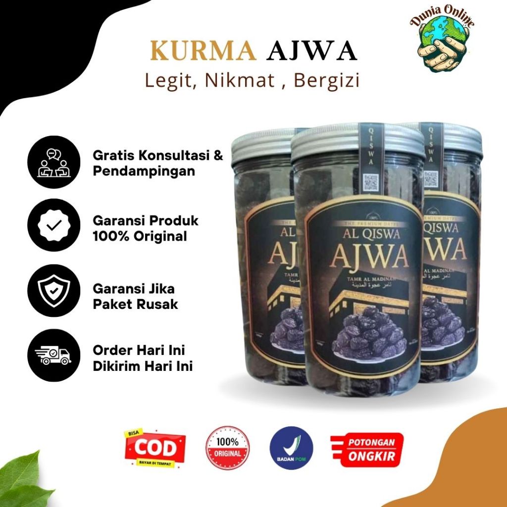 Kurma Ajwa Al Qiswa, yang dikenal sebagai "Kurma Nabi", adalah kurma premium dengan rasa manis lembut, tekstur legit, dan kaya manfaat kesehatan. Kini tersedia dalam kemasan eksklusif tabung 500 gram, praktis dan higienis, cocok untuk konsumsi harian atau sebagai hadiah spesial.