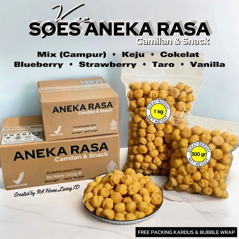 : Kue Soes Aneka Rasa adalah kue kering yang berisikan selai pasta premium dan memiliki warna yang lebih cerah.