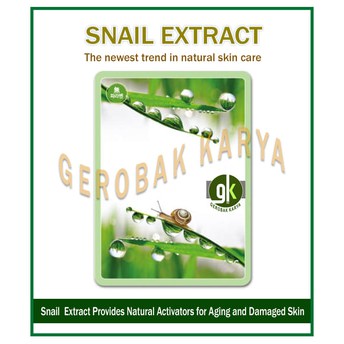 Merupakan kombinasi luar biasa dari beberapa bahan alami yang telah terbukti memiliki zat yang bermanfaat bagi kulit manusia. Sebab dalam Snail Extract juga sudah terkandung Allantoin, Glycolic Acid, Vit E, Vit C, Vit A dan Elastin, sebuah perpaduan yang hebat, sehingga Snail Extract dapat membantu memperbaiki berbagai kondisi kulit wajah seperti flek/noda hitam, jerawat, bekas jerawat, keriput, stretch mark, kulit kusam, dll.