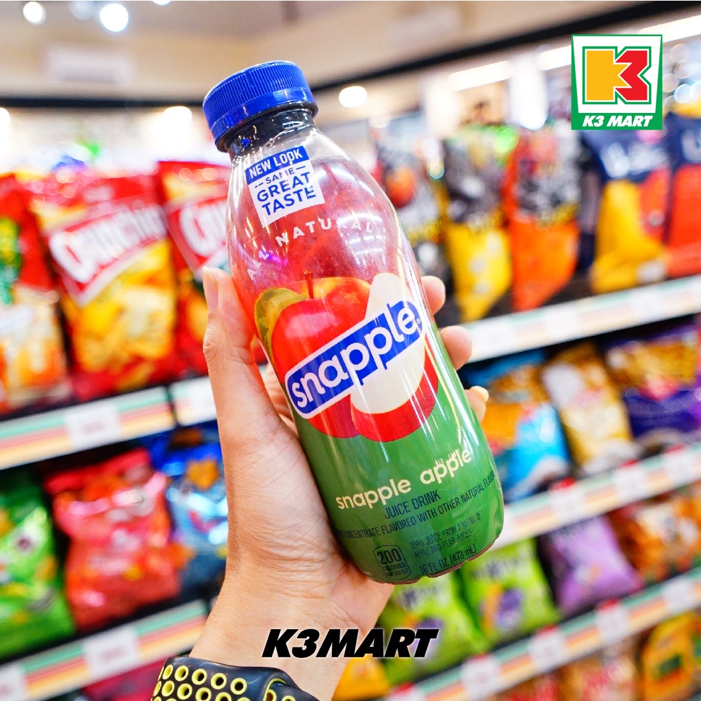 Snapple Apple 473ml merupakan minuman segar rasa jus apel terbuat dari buah apel segar dan diproduksi menggunakan teknologi tinggi menghasilkan minuman yang menyehatkan dan menyegarkan 100% halal